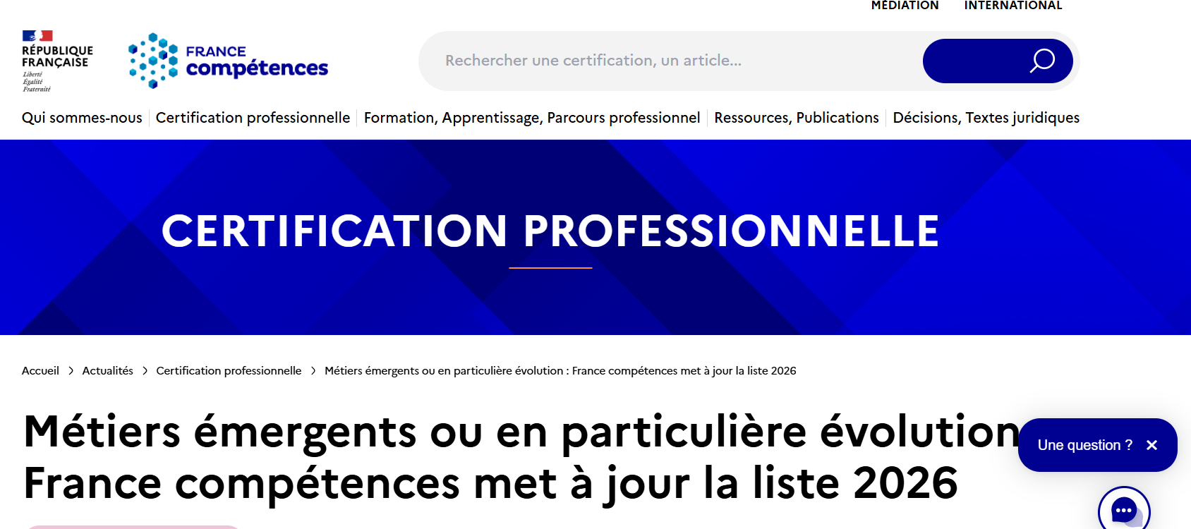 Merci à France compétences pour la mise à jour des « Métiers en évolution ou en émergence en 2026 ».